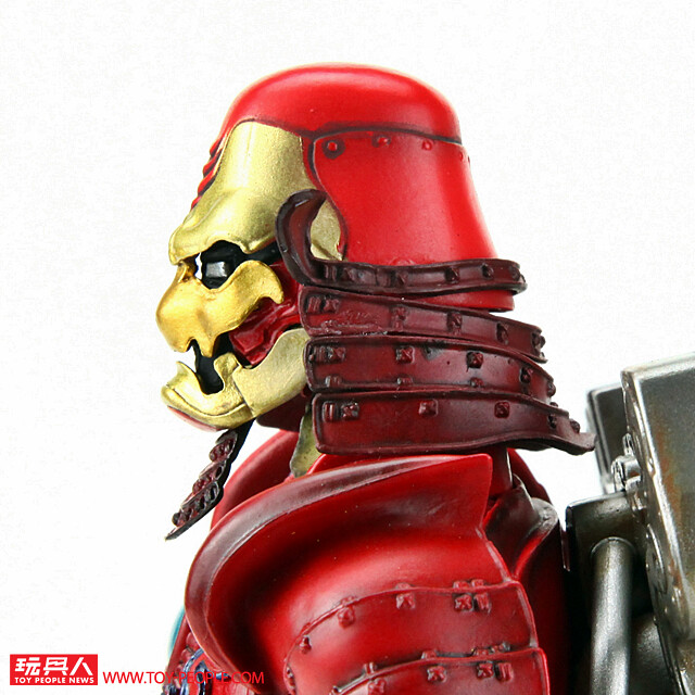 ▼ 以「鋼鐵人」的面罩為基礎,威嚇敵人的面具導入了日本傳統震攝敵人用的鬼神臉譜造型,除了精彩的造型之外,並使用了層次的設計,讓整體更加具有立體感。