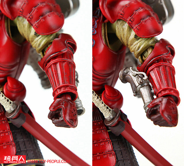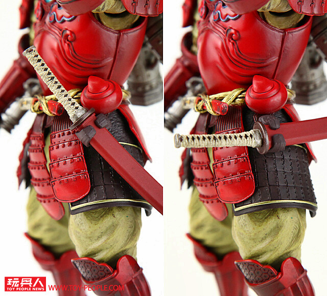 ▼ 除了整體造型相當精采之外,細節配件也絲毫不馬虎,腹部的綁帶、舊化效果與短刀的造型都刻畫的非常細緻,就像是真的存在於戰國歷史上一樣逼真。