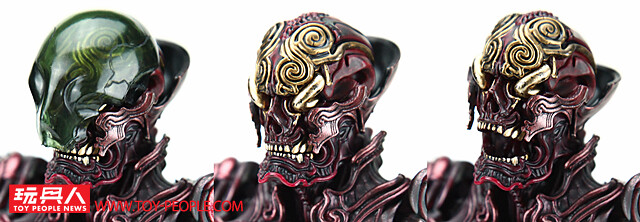 ▼ 頭部具備了三種不同的型態:綠色面罩、裸露與張嘴造型。