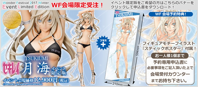 日廠Orchidseed公司之前公開發表將推出《鶺鴒女神》戀愛喜劇漫畫作品裡的主要登場角色「月海」的上色完成品,這次將繼續推出"WF2017展覽限定版本(イベント限定)",有別於之前淺藍色比基尼這次以神祕黑色比基尼來呈現,一樣印有著她的編號「09 SEKIREI」,此作將於Orchidseed攤位會場在中午12時開始接受訂購,這次預購特典一樣是印有極樂院櫻子繪製的原畫長型海報,喜愛《鶺鴒女神》系列作品的玩具人可以參考一下歐!