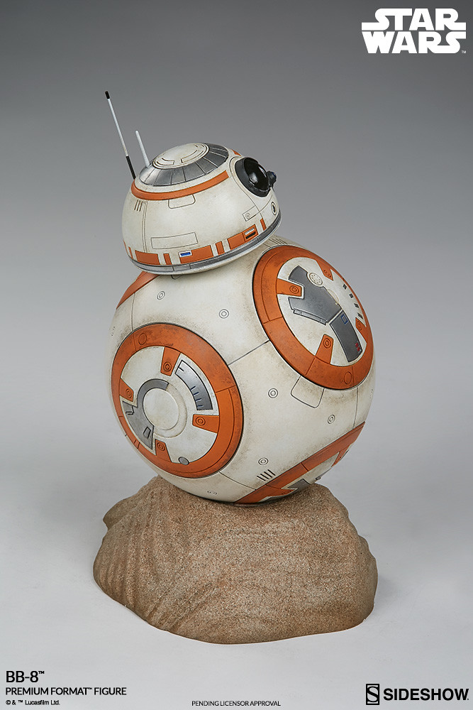 在電影STAR WARS:原力覺醒中,女主角「芮」是原本獨自居住在賈庫星球(Jakku)的災後倖存者,靠著在星船墳場的拾荒來生活。而後撿到了BB-8 而捲入了第一軍團與反抗軍之間的戰爭當中。這次Sideshow 公司要推出的「BB-8」作品是在賈庫星球上與波.戴姆倫(Poe Dameron)分開後遇到芮時滿身是沙的造型。