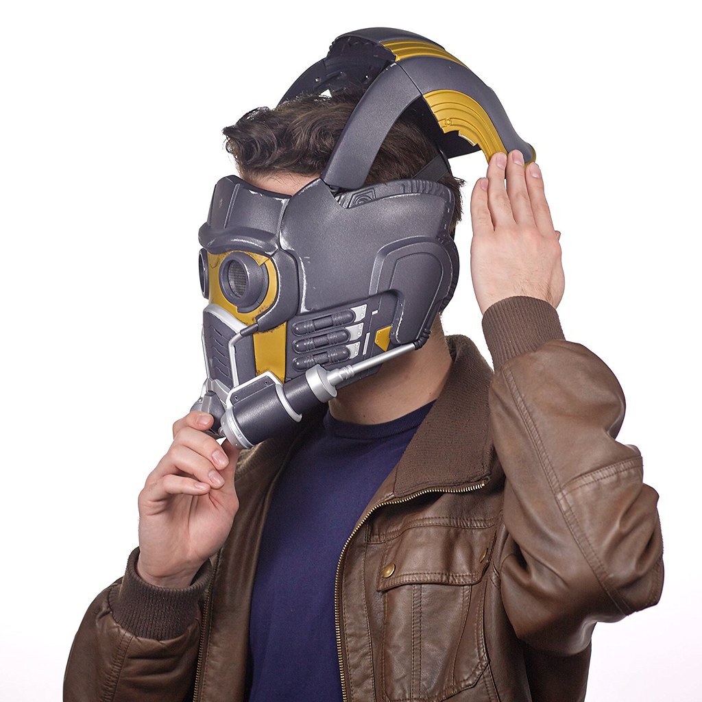 承襲鋼鐵人頭盔的高擬真製作技術,這次所推出的「星爵頭盔聲光效果頭盔」擁有比一般扮裝玩具更高水準的造型與塗裝表現。除了外觀的金屬質感與造型之外,頭盔內部也刻畫了大量細緻的細節,並附有調整的頭帶幫助能夠更舒適地配戴至正確的位置。裝上三顆三號電池(AA)之後做出發光以及多種音效的機能!