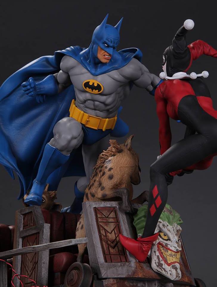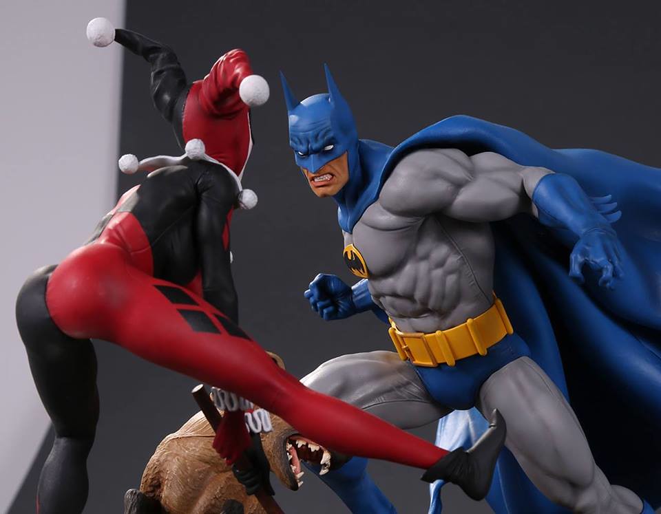 繼推出了美式暴走族風格Gotham City Garage 漫畫版本的小丑女哈利·奎恩(Harley Quinn)的雕像作品之後,知名玩具品牌 DC Collectibles 公司這回又將推出一款以小丑女為主題的戰鬥場景作品「蝙蝠俠大戰小丑女」(Batman vs. Harley Quinn Battle Statue)的1/6 比例全身雕像作品。