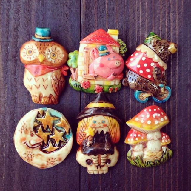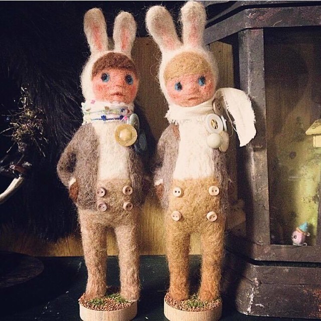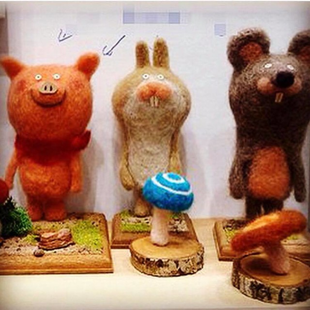 小川老師:雖然原本是插畫家,不過接觸羊毛也大約有4年了吧。在日本要接觸羊毛氈是很容易的,在附近的手工藝品店就能簡單入手,所以就自然而然的使用了這種常見的素材。一開始的作品則是看著別人的作品,模仿著製作一些小東西。跟大家分享一下,我最初的創作...