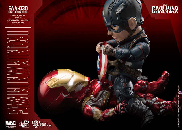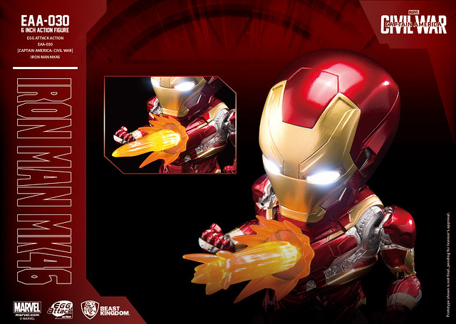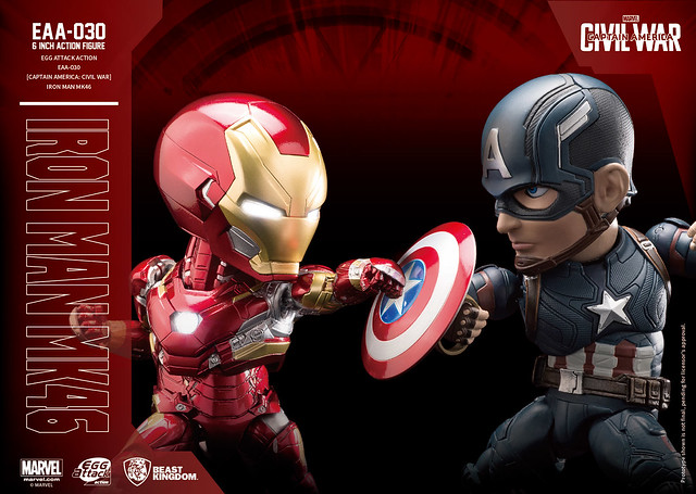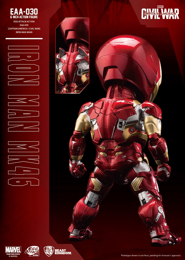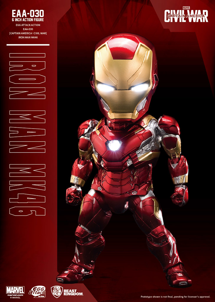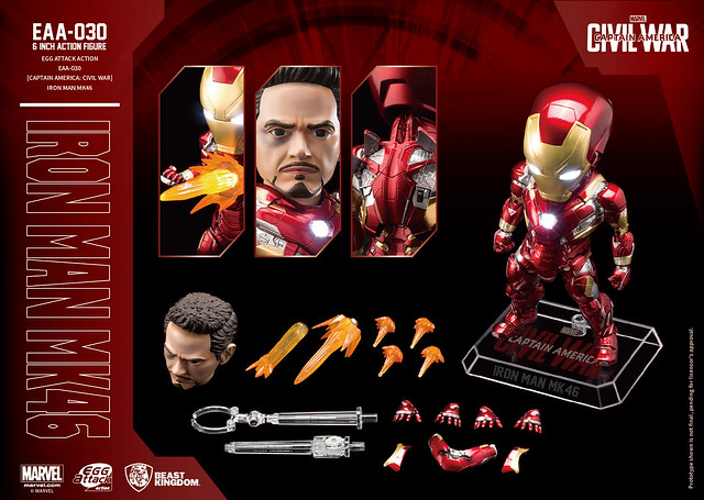 野獸國暢銷熱賣的Q版造型可動玩具系列「Egg Attack Action」,最新作將推出《美國隊長3:英雄內戰》中登場、最終決戰造型的鋼鐵人馬克46,本作最大的特色在於附屬了全新登場、Egg Attack 系列首見的「東尼‧史塔克」造型頭雕。