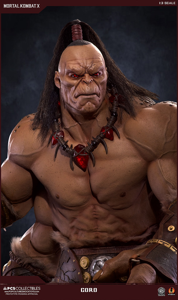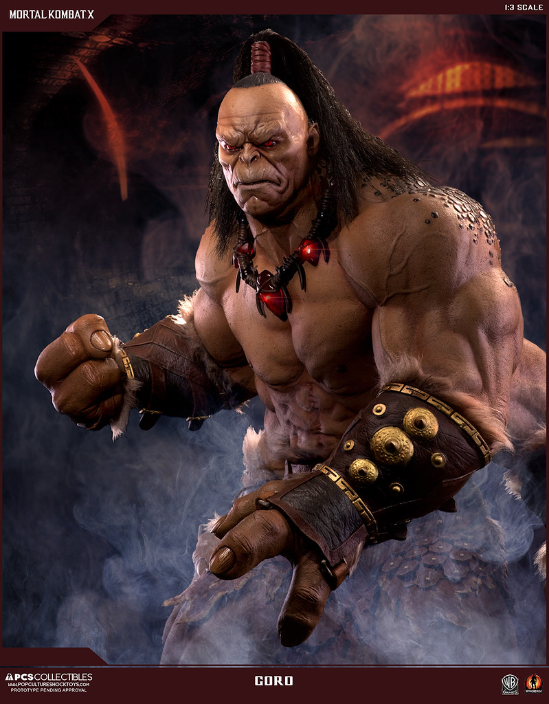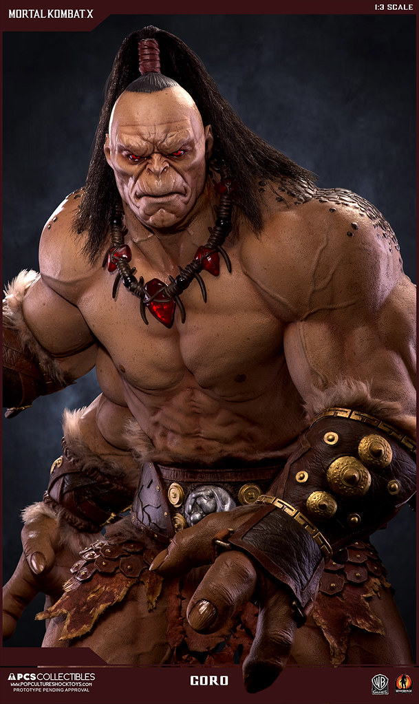 由美國玩具設計師Jerry Macaluso 所成立的Pop Culture Shock Collectibles 公司又要推出全新造型的雕像作品啦,繼推出1/4 比例的「紹.可汗/紹康」(Shao Kahn)、「魔蠍」(Scorpion)作品之後,PCS Collectibles 公司將在旗下真人快打系列(Mortal Kombat Klassic)開啟1/3 比例的全新計畫,而這次將要推出的就真人快打X(Mortal Kombat X)中非常凶殘的「戈洛」(Goro)1/3 比例全身雕像的作品啦!