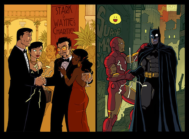 由於都是天才加上有錢人,鋼鐵人跟蝙蝠俠間常被比較,所以才有這句笑話出現,此外如果有關注相關的娛樂新聞,這其實也是暗示DC和漫威之間在討論透過樂高來合作的可能性。