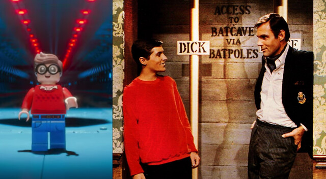 當阿福說到蝙蝠俠經歷好多階段,提到66年時就沒有用樂高,反而是用當時的原本畫面,因為那是66影集中蝙蝠俠最經典的跳舞畫面,不用真人呈現反而沒有到位。