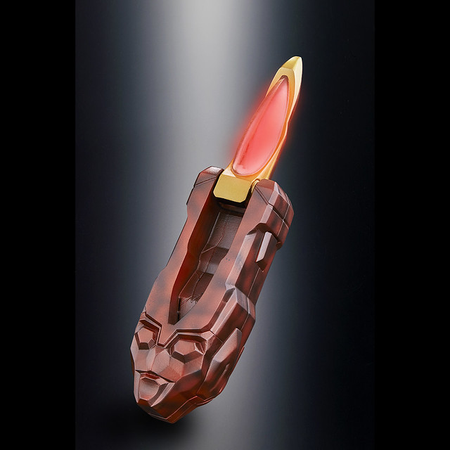 在變身器的的兩側各有一顆按鈕,可以用來展開水晶、發出變身音效、切換型態等。水晶部份內藏有LED模組,在切換「閃亮型」「奇蹟型」、「強壯型」時會發出對應的色彩以及各型態必殺技的音效。商品中還附有黑色的展示用台座,不論是在水晶收納/展開狀態都能穩固地展示!