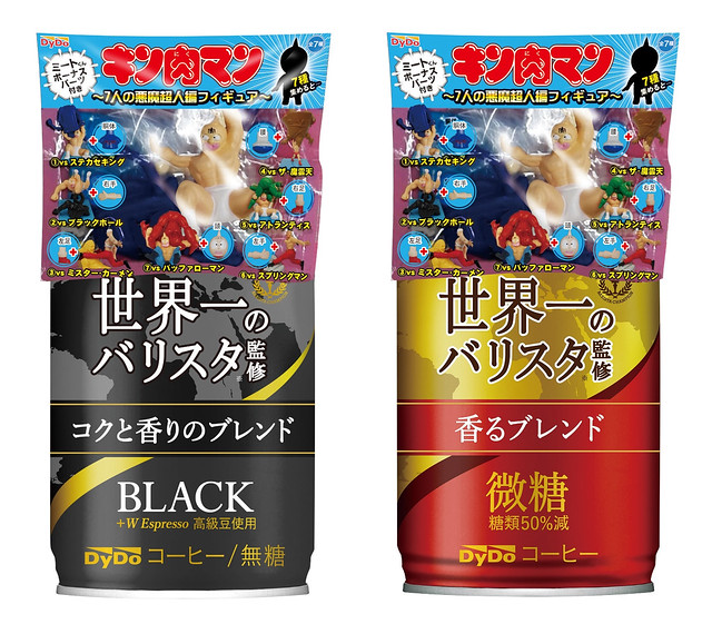 曾推出【杯緣的快打旋風】而獲得大好評的日本Dydo 咖啡,為了宣傳最新推出的咖啡,推出了「金肉人 惡魔七超人篇」公仔,全套一共七種款式,每一款都重現了惡魔七超人篇中的經典場面之外,還將附屬了「米特君」配件,收齊全套就能像原作一樣重新復活被分裂為七塊的米特君!