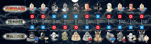 這一個促銷活動將於3月13日開始於日本各地的便利商店與量販店展開,除了一般零售之外,也將限定數量發行收錄全套七種的限定包裝「正義超人BOX」與「惡魔超人BOX」兩款。 每個限定將依主題設計之外,包裝盒底部還印製了「金肉人 惡魔七超人篇」原作完結時的劇情,並在包裝內印有「金肉人 惡魔七超人篇」中全部的11場戰鬥勝負表。