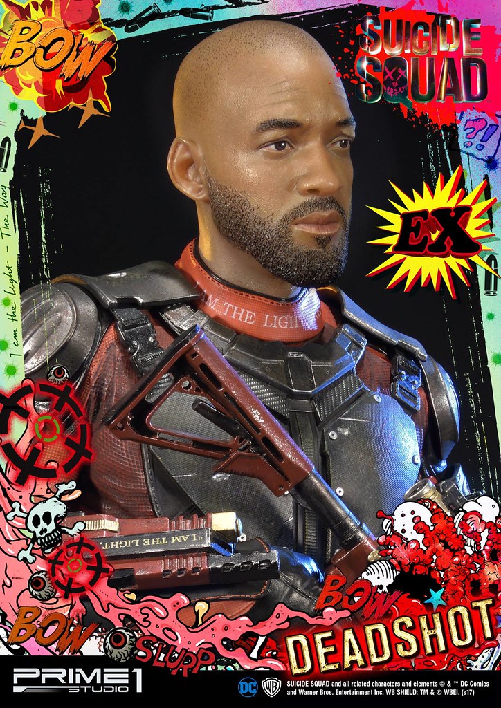 過去僅在美國影集綠箭俠出現過的DC Comics 反派角色「死射」,首度在電影上登場是由知名美國男星「威爾.史密斯」(Will Smith)所詮釋。而這次Prime 1 Studio 公司所推出的死射作品可說是佛心來了!附上了左眼戴著狙擊瞄準觀測器的威爾.史密斯、戴上白色面具造型的死射兩顆頭雕;而限定版本的作品更有附上一顆普通造型的威爾.史密斯頭雕啊!