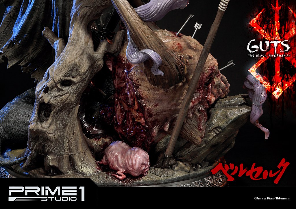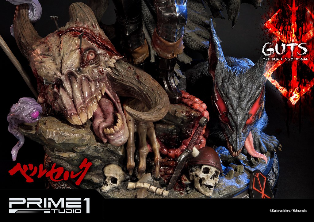 這次所發行的作品,讓各位玩具人能夠藉由Prime 1 Studio 強大的造型製作技術,360度感受黑衣劍士凱茲充滿霸氣與狂氣的震撼姿態;極具份量的尺寸與造型,壓倒性的高水準來將其立體化。 內容附有兩種不同手勢與塗裝的「屠龍大劍」,能夠呈現出不同的姿態,並附有戰勝魔物的驕傲笑容與冷酷神情兩種不同的頭雕可供替換。除此之外,身上的服裝、場景中的多種角色細節皆忠實並豐富地一一呈現,讓整體造型更加具有深度與層次。 最後,本作將同步於官網限定發行EX版,內容將追加一個瘋狂笑容的特殊頭雕。