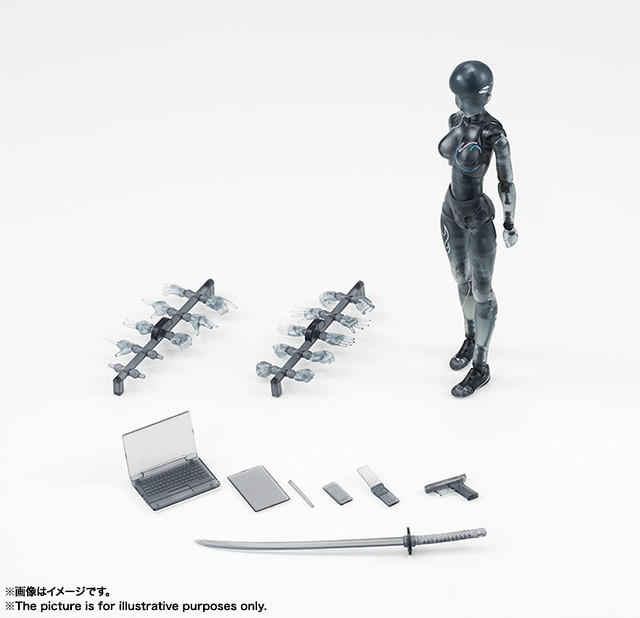 配件部份則是和「DX豪華版」相同規格,收錄了豐富變化的七種左手交換零件、10種右手交換零件、筆記型電腦、平板電腦、手槍、日本刀、筆、智慧型手機、一般型手機以及專用台座。不僅能用來輔助創作,更具紀念價值!