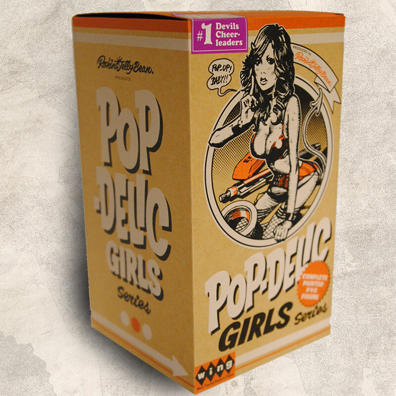 日本知名蒙面插畫家Rockin'Jelly Bean 創作生涯至今最暢銷熱賣的作品、由WING – POP DELICGIRLS 系列所發行的“惡魔啦啦隊”立體PVC人偶,繼普通版、黑色限定版之後,因應全球RJB粉絲們的熱烈請求,再度復刻推出了極高人氣的“惡魔啦啦隊”湖人隊配色。