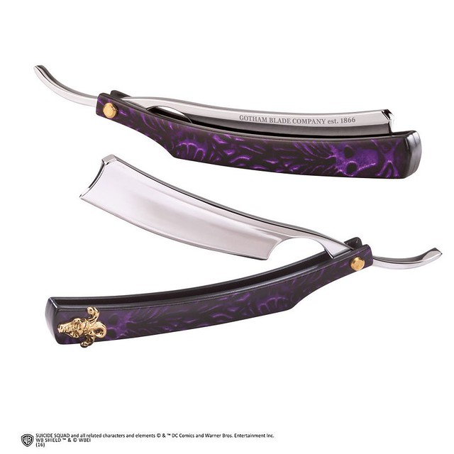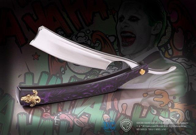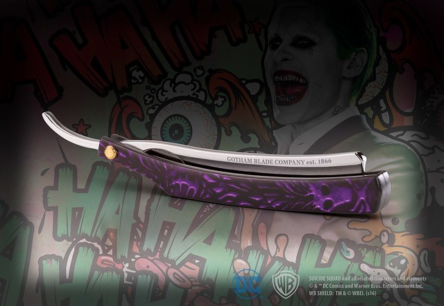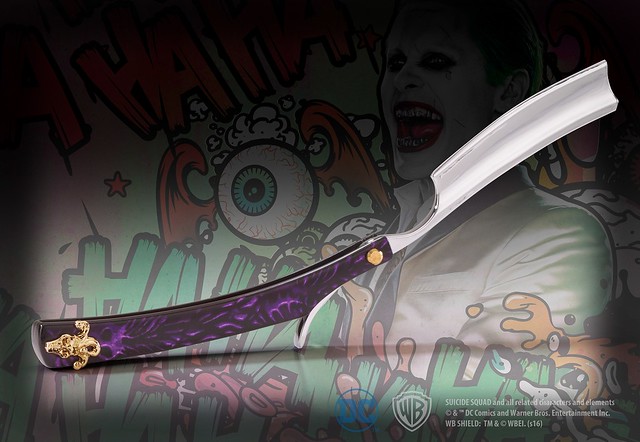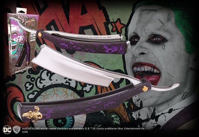 歐美新興的影視作品道具複製品、周邊商品廠牌「The Noble Collection」,宣布將發行去年的熱賣電影《自殺突擊隊》中,小丑所使用的個人化剃刀,將其商品化製作為拆信刀的形式發行。