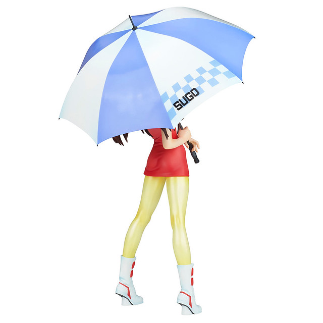 「菅生明日香 1/7比例模型」重現了動畫中的造型,服裝上的皺摺、菅生車隊隊徽皆細膩再現。配件中附有兩套造型零件,可以替換成手持遮洋傘、頭戴遮陽帽、身穿賽車女郎服裝的明日香,以及穿上賽車外套、雙手捧著隼人安全帽的明日香,遮洋傘的骨架、安全帽的內襯層次、外觀花紋等細節都相當精緻!