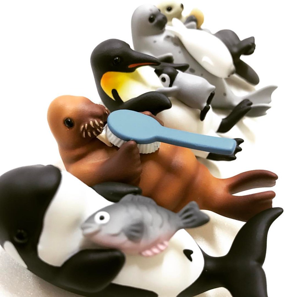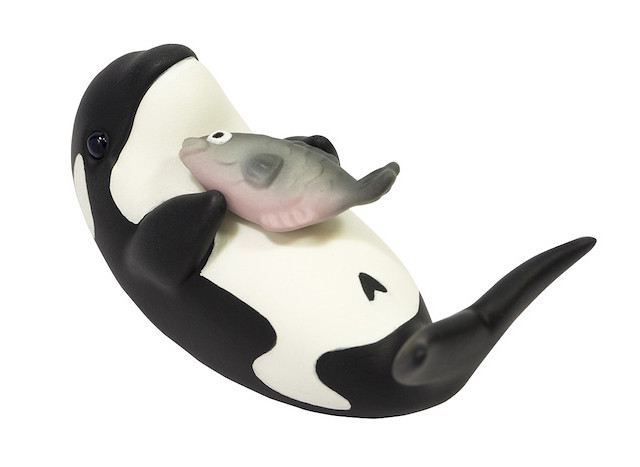 預計將以同個逗趣的姿勢來把「帝王企鵝(コウテイペンギン)」、「海象(セイウチ)」、「斑點海豹(ゴマフアザラ)」和「虎鯨(シャチ)」等等五種不同動物來轉化設計,像是虎鯨就是把牠的食物"魚"放在肚子上面的模樣真是有趣啊!帝王企鵝則是表現和幼子企鵝寶寶"親情同樂"的樣貌,喜愛動物系轉蛋作品的玩具人可以參考一下歐!