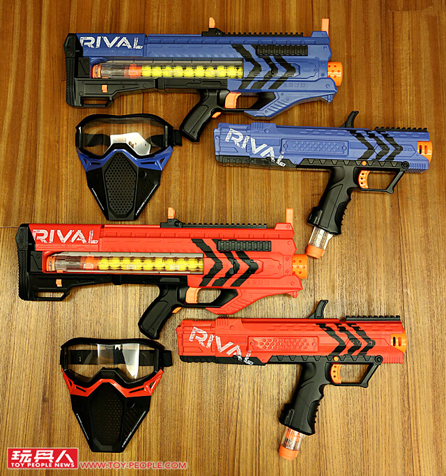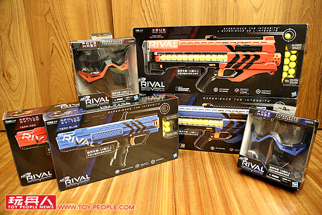 ▼ 首波在台灣上市的NERF 決戰系列,將推出阿波羅XV700、宙斯XV1200與戰術面具三種產品。 由於是對戰系列,所以每一個款式皆有推出紅、藍兩種配色,方便各位玩具人分組對戰使用。(由於是測試用的樣品,所以包裝的狀況有點傷眼,實際上的包裝可是漂亮的很!... 請各位玩具人多見諒~)