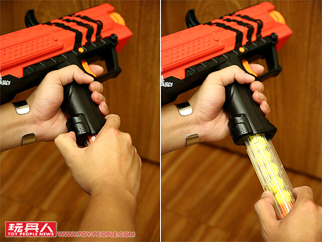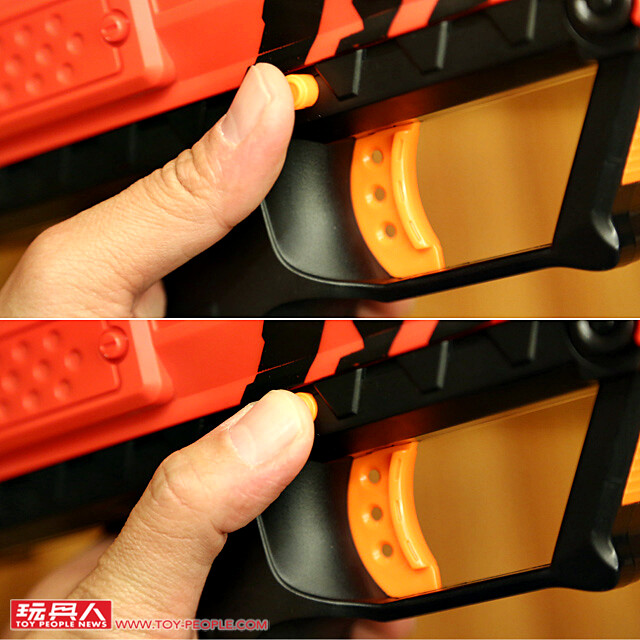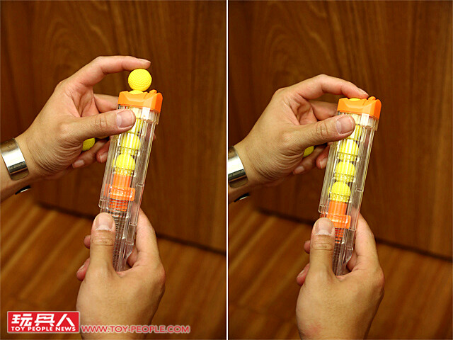 ▼ 阿波羅XV700 使用的普通版彈匣每次能夠裝填7發球彈;球彈的裝填其實與一般NERF 彈鏢的方式相同,輕輕塞入即可。