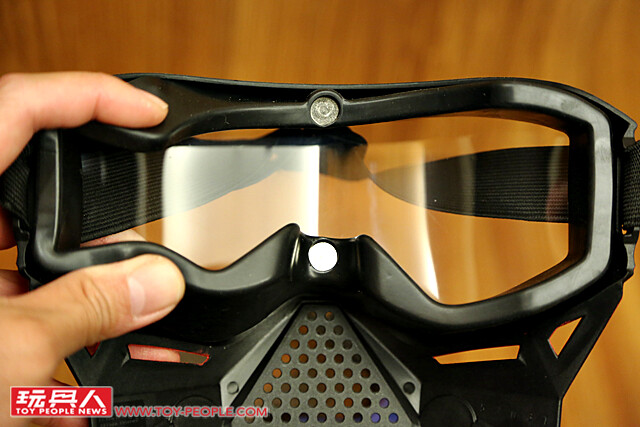 ▼ 喔喔喔~戴起來還蠻帥的啊!(撥瀏海)戰術面具配戴起來相當舒適,其實最主要的固定就只有頭帶也就是護目鏡的部分而已,但非常的舒適與穩定。 另外,防護鏡片做的很大,所以完全不會影響到視覺,超讚!