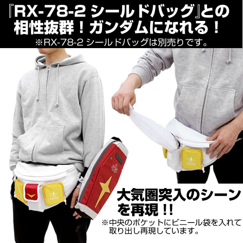 以各式動漫、電玩主題,搭配上“COSPLAY”概念推出許多有趣服飾系列的日本品牌「COSPA」,宣布將發行以《機動戰士鋼彈》主角機RX-78-2 與敵役薩克、夏亞專用薩克腰部造型為設計的霹靂腰包。