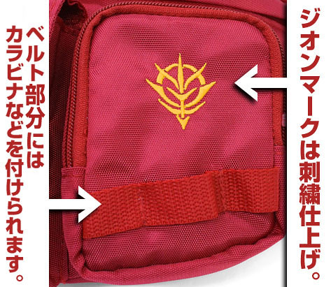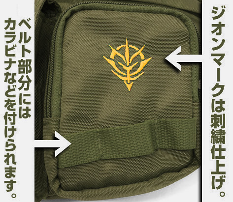 除此之外,腰包上特徵的地球聯邦軍與吉翁公国圖樣,皆採用高品質的刺繡製作,讓整體的質感表現更棒;另外,腰帶設計成便利的可調整式,搭配上微調了腰包的造形設計,也能夠當作斜背包使用。 搭配上先前發行的多款商品,再加上先前推出的鋼彈水槍,造型就更加完整啦~:D