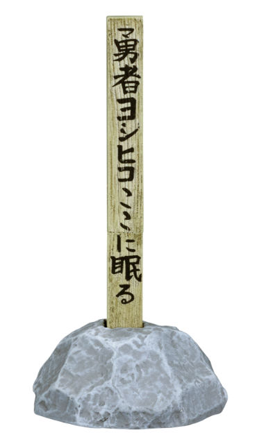 ▪勇者義彥的邀請之劍(ヨシヒコの剣):可說是本商品中最為實用的道具,劍本體可當作迴紋針吸鐵,掛上二次元義彥吊環後就變成帥氣的吊飾,還附有石頭底座可重現尚未被拔出的模樣,以及形式相當隨便的義彥墓碑,可插在石頭底座上。
