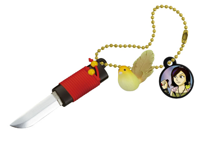 ▪阿紫的伸縮玩具刀(ムラサキのひっこむやつ):曾用來行刺義彥但完全捅不死人,阿紫的伸縮玩具刀完全再現了劇中的伸縮功能,不具危險性可安心把玩。刀柄的樣式意外精緻,掛上黃色小鳥「奇洛」以及二次元阿紫吊環後就變成可愛的吊飾。