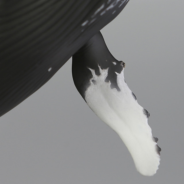 可動式的上顎打開後可看見嘴內塗裝精緻的鯨鬚。兩片胸鰭亦能迴轉可動,可擺設出鯨魚從水面躍起(Flipper Flopping)的壯闊場景。尾巴部份也設有兩段迴轉可動,重現鯨魚用尾巴拍打水面(Tail Slap)的姿勢!
