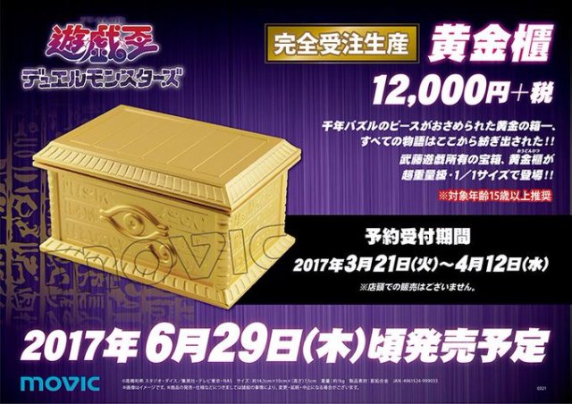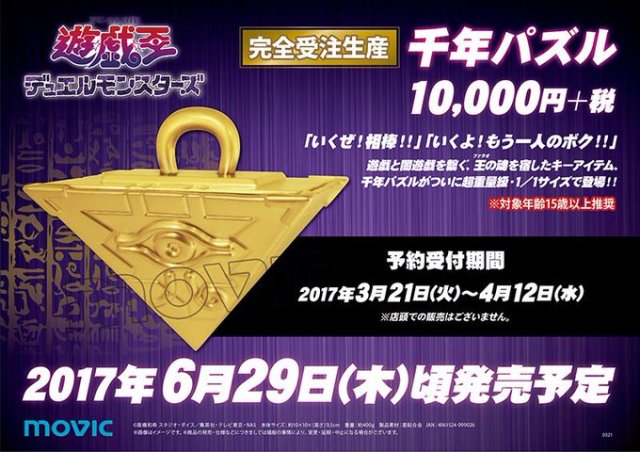 在大人氣《遊戲王》漫畫作品裡面所出現的關鍵道具「千年積木(千年パズル)」與「黄金櫃」,這次由Movic公司將推出"亞鉛合金"材質的1:1比例作品歐!