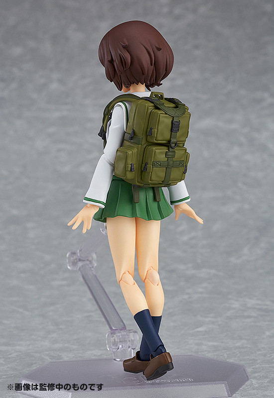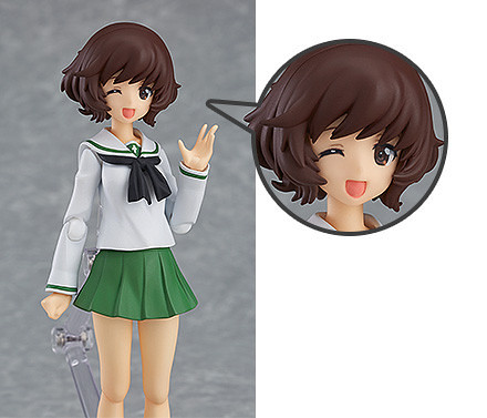 「figma 秋山優花里 制服ver.」除了以大洗制服的全新造型再次登場外,所附的表情也是完全異於前作的新規零件,分別有:開朗的「笑臉」、敬禮時的「得意臉」以及極度放鬆的「閉眼笑臉」。配件則有色彩相當精緻的「軍用背包」、在劇中用來叫醒麻子的「軍號」以及「坐姿用短裙」零件,同時也能搭配過去發售的「figma 秋山優花里」中的配件使用!另外在「GOODSMILE線上商店」訂購的話則再贈送「眨眼臉」特典!