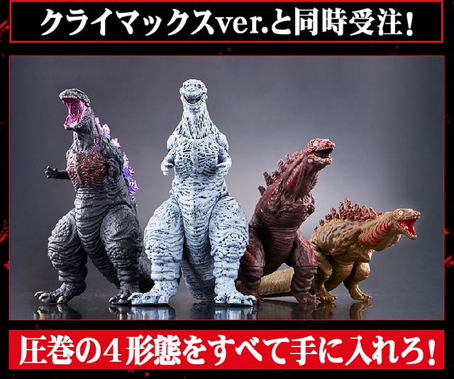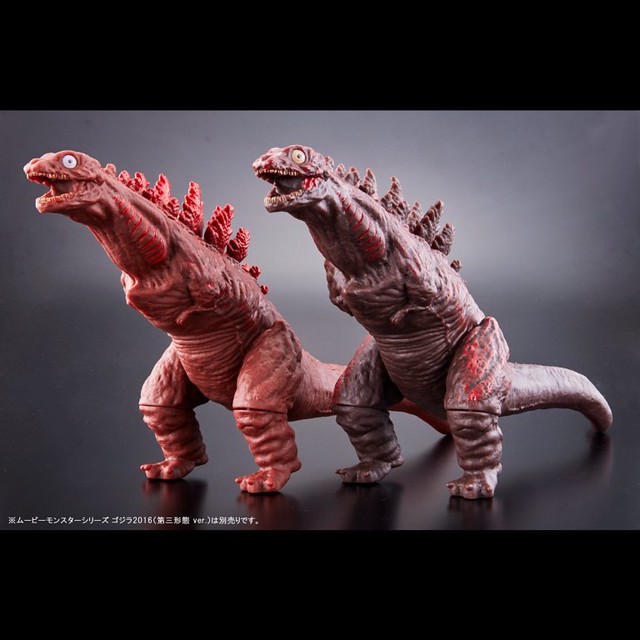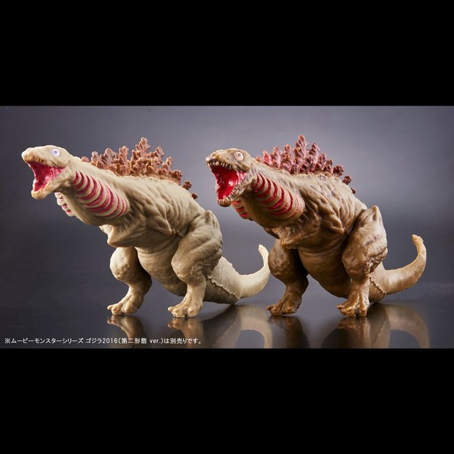日BANDAI萬代玩具公司的軟膠怪獸系列(ムービーモンスターシリーズ)之前已經以《哥吉拉2016》為題材,推出過系列的「哥吉拉2016」立體作品,這次將繼續推出「哥吉拉2016 型態變化3體一組(ゴジラ2016 形態変化3体セット)」(名稱暫譯),以電影劇情裡面出現的"凍結"模樣,尾巴是以新規造型來呈現,以及第二型態"蒲田君"與第三型態分別以「重新塗裝」的配色共同來販售發行,這次作品將於魂Premium Bandai線上商店在2017年3月22日起開始接受訂購,喜愛《哥吉拉2016》系列的玩具人可以參考一下歐!