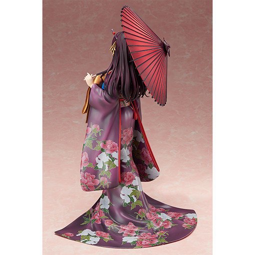 「霞之丘詩羽 和服ver.」以角色原案 深崎暮人老師繪製的插畫為基礎,將身穿華麗和服,猶如「花魁」般的霞之丘詩羽立體化。臉部再現了詩羽溫柔美麗的笑容,和服以紫色為基底印上了精緻的花樣,結於前方的腰帶更是以奢華的金色呈現,微微露出的香肩與胸口展現了一絲性感。詩羽的頭上還有具有象徵意義的石榴石髮飾、金色髮箍等豐富且精緻的飾品,紙傘的漸層塗裝更呈現了透光感。