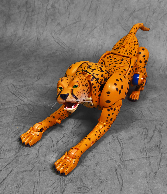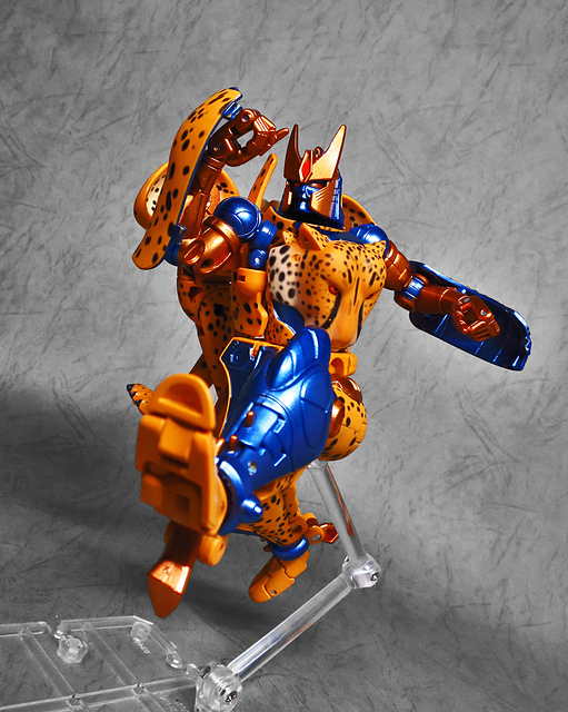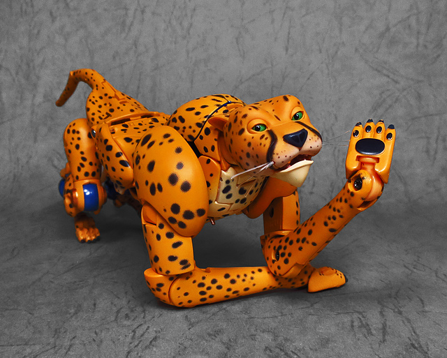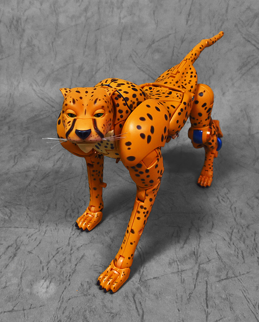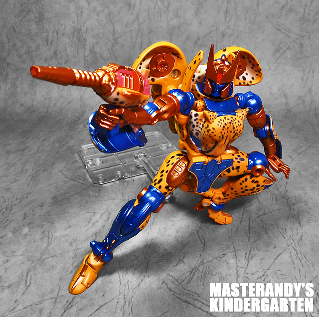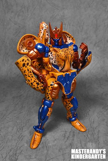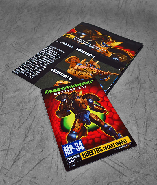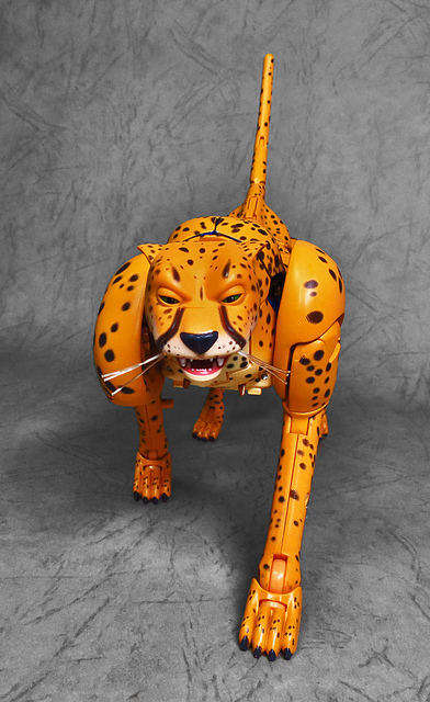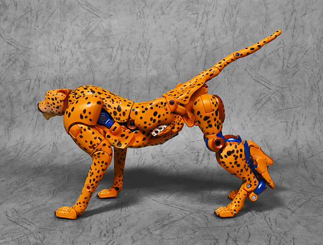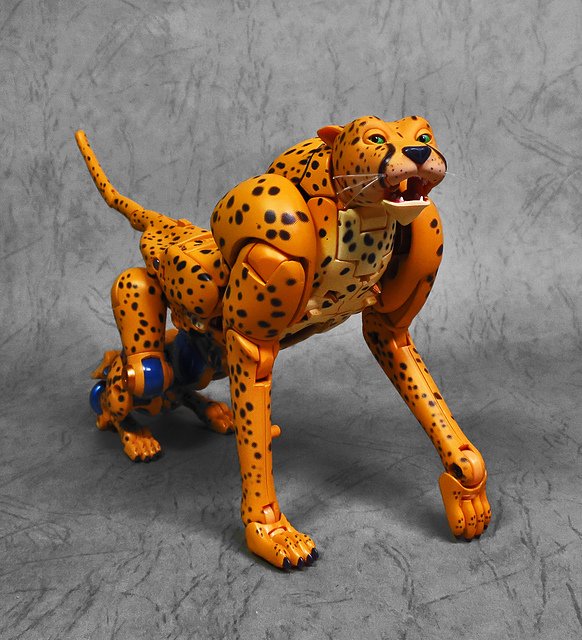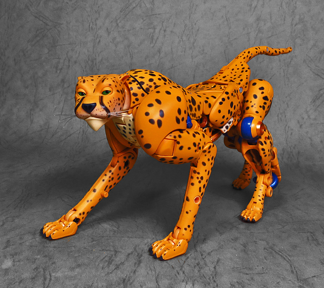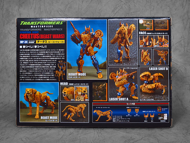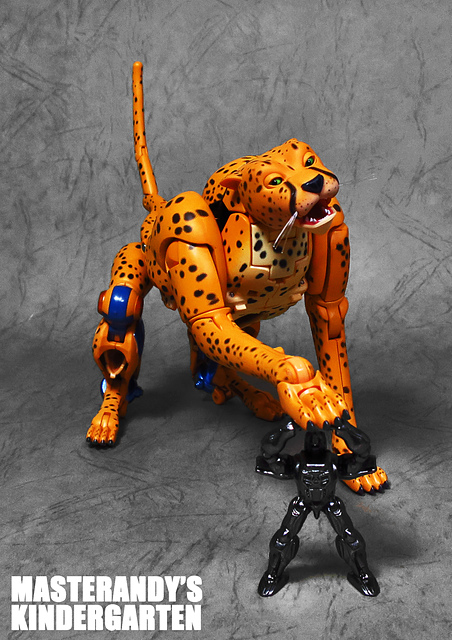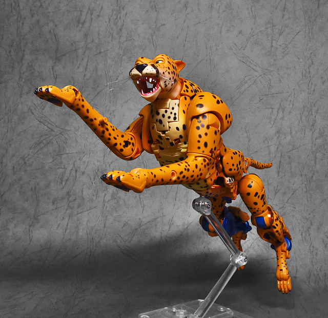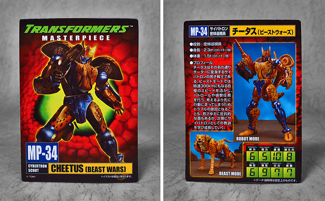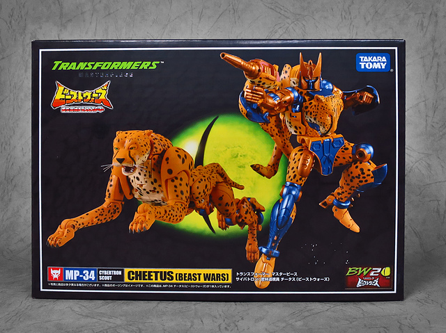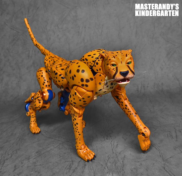 2016年,搭著Beast Wars(百變金剛/野獸戰爭,以下簡稱BW)上映20周年的順風車,TT社正式將BW的熱門角色納入MP產品線中,作為打頭陣的前鋒,金剛王(コンボイ/Optimus Primal/奧迪武/黑猩猩隊長)可說是完美地重現了CG動畫中的樣貌,野獸與機器人型態間的平衡拿捏不僅恰到好處,變形的過程也讓人驚喜連連,獲得許多BW愛好者的讚賞,而本篇的主角,正是BW MP化的第二彈:強大獸(Maximal)的年輕偵查兵-豹子(チ-タス/Cheetor/豹子/黃豹勇士/捷達)是也!