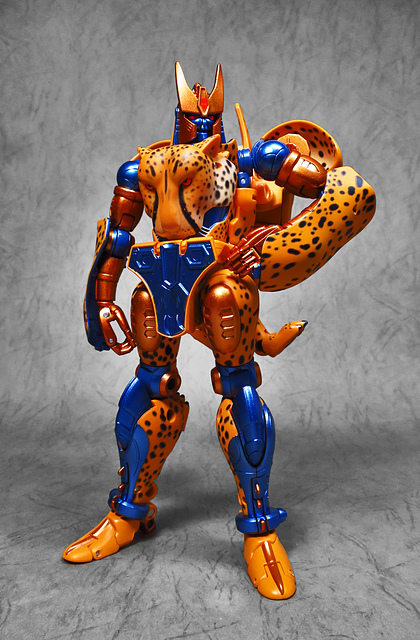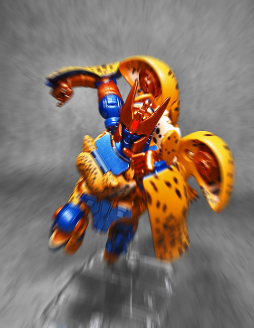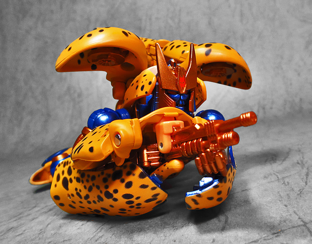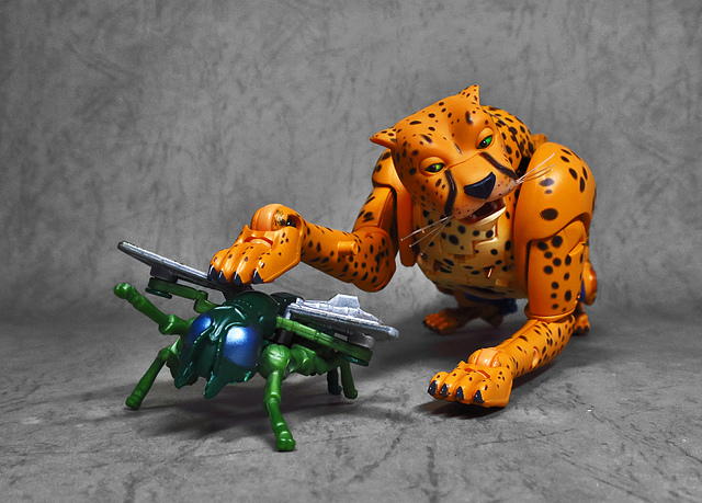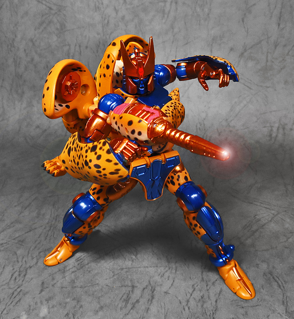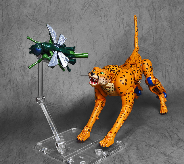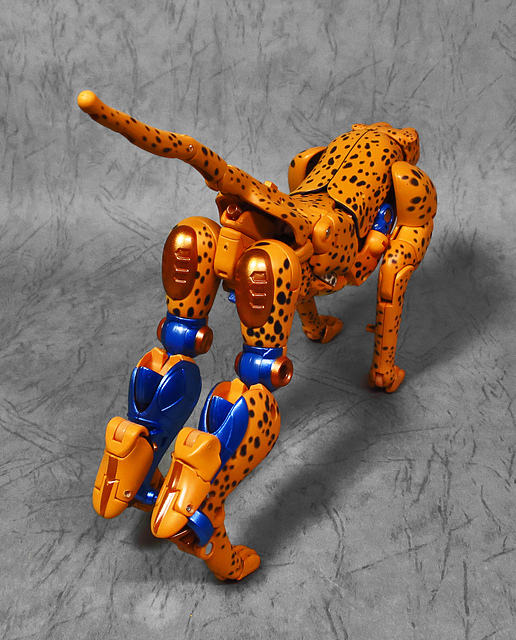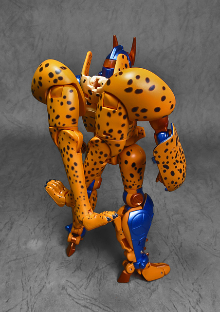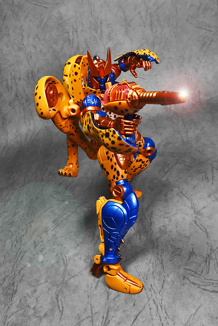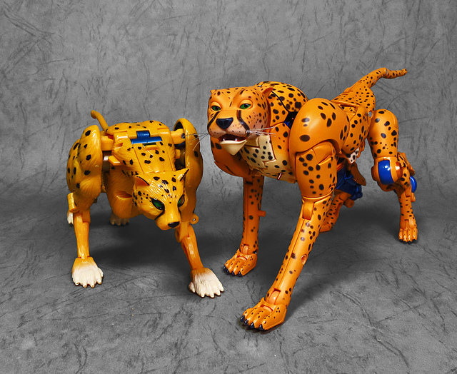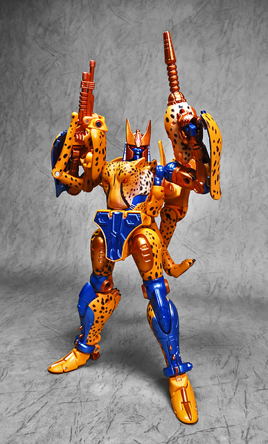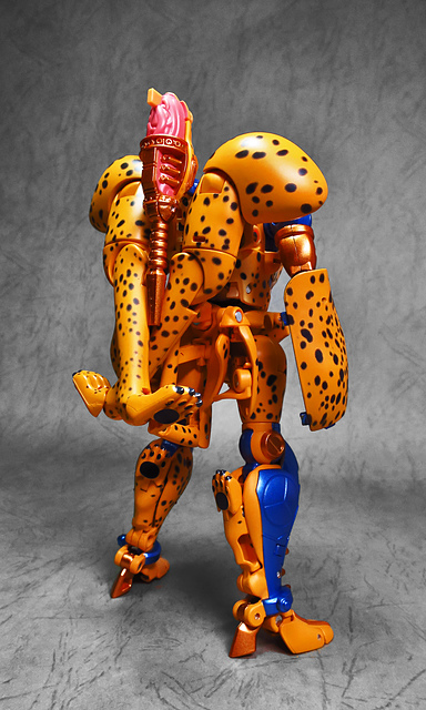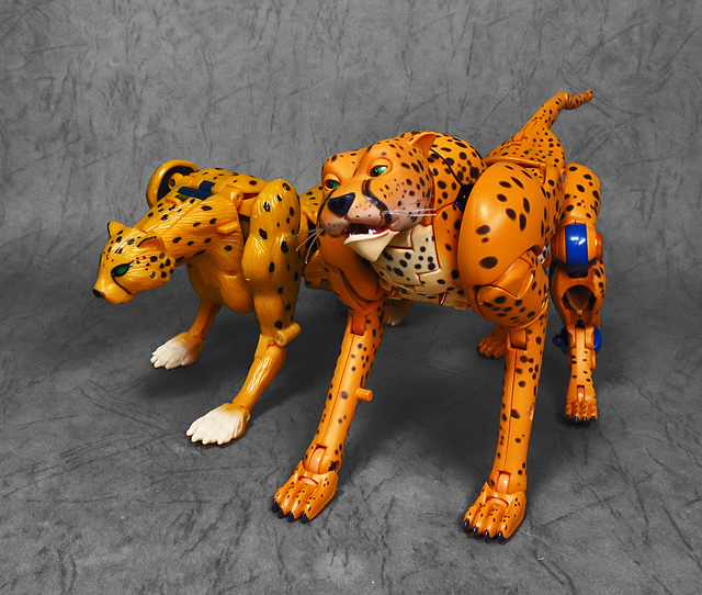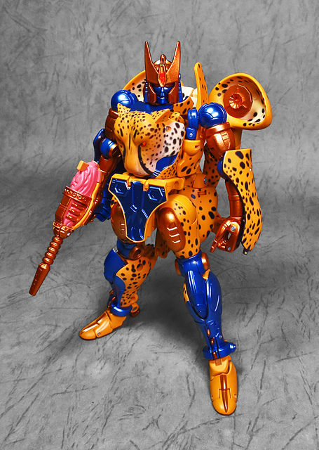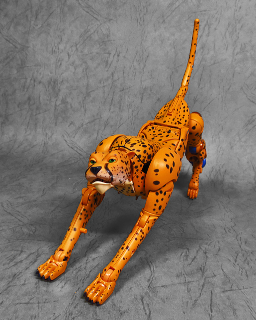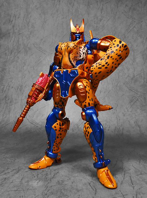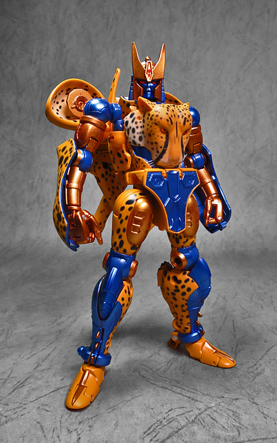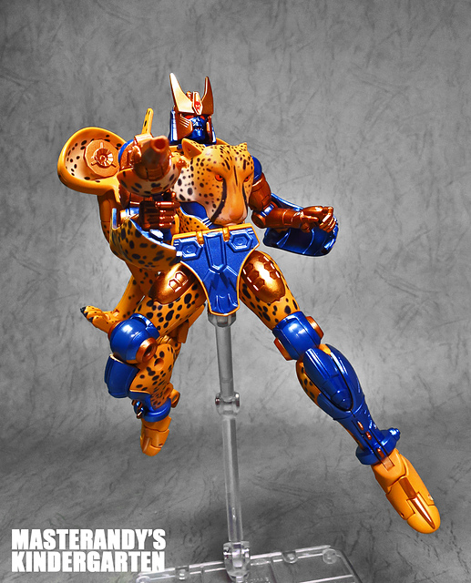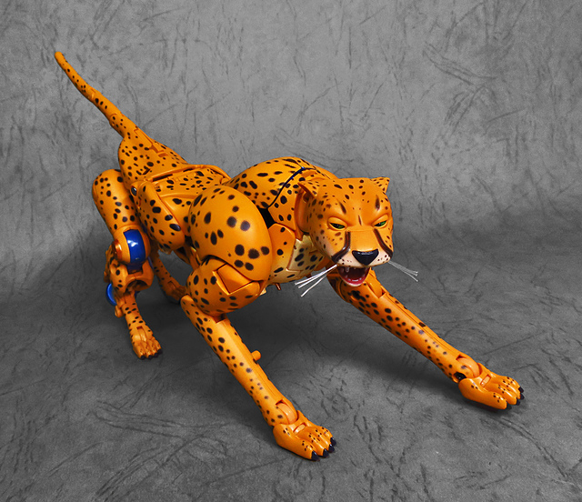 2016年,搭著Beast Wars(百變金剛/野獸戰爭,以下簡稱BW)上映20周年的順風車,TT社正式將BW的熱門角色納入MP產品線中,作為打頭陣的前鋒,金剛王(コンボイ/Optimus Primal/奧迪武/黑猩猩隊長)可說是完美地重現了CG動畫中的樣貌,野獸與機器人型態間的平衡拿捏不僅恰到好處,變形的過程也讓人驚喜連連,獲得許多BW愛好者的讚賞,而本篇的主角,正是BW MP化的第二彈:強大獸(Maximal)的年輕偵查兵-豹子(チ-タス/Cheetor/豹子/黃豹勇士/捷達)是也!