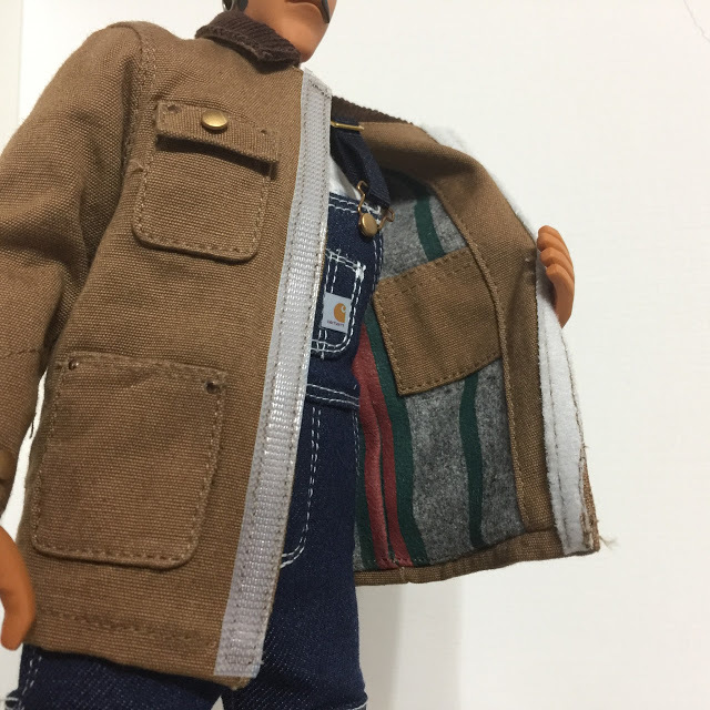 忠實呈現Michigan Chore Coat內裡壓克力刷毛以及內裏口袋,扣子部分直接用魔鬼氈處理 |