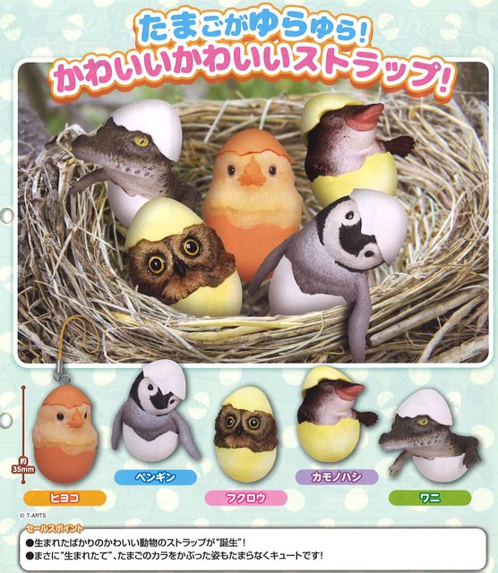 由日本TAKARA TOMY公司旗下轉蛋品牌「T-ARTS」推出,將剛從蛋裡孵出來的動物形象與吊飾結合的新作轉蛋商品「搖搖晃晃蛋吊飾(暫譯)」(たまゆら たまごゆらゆらストラップ)已於 2017 年 03 月下旬發售。