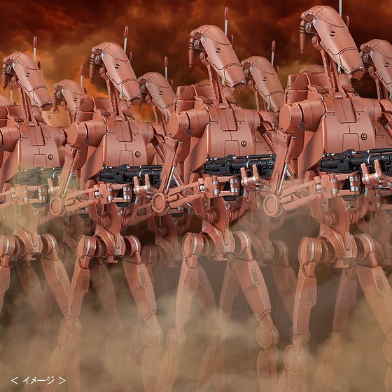 日BANDAI萬代玩具公司的模型事業部“BANDAI Hobby”之前以《星際大戰》電影主題推出過「黑武士-達斯‧維德」、「C-3PO」、「法斯馬隊長」、「帝國風暴兵」、「闇影暴風兵」和「尤達」等等系列電影劇中所登場的各式角色人物,這次將繼續推出1/12比例尺寸的「戰鬥機械兵(バトル・ドロイド)」的組裝模型作品。