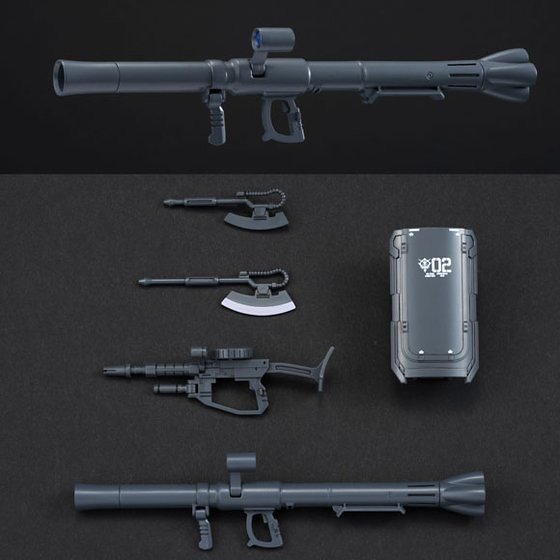 「MS-05 薩克I(黑色三連星機)」使用的套件與先前發售的「HG THE ORIGIN 薩克I(丹寧 / 史雷德機)」相同,成形色則改為黑色三連星仕樣的藍黑色,武裝部份除了原本的MS用機槍、熱能斧、護盾外,還新增了MS用火箭炮A1型。附上的貼紙也包含了蓋亞、馬修、歐魯迪卡各機專用的標誌,配合不同的武裝搭配就能重現各機的樣貌。