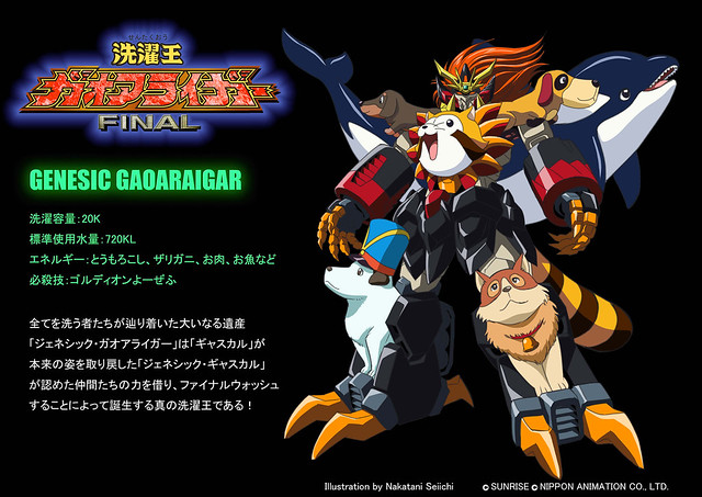 「洗衣王GaoAraiGar」是由宇宙浣熊「加斯卡爾(Gascal)」與3架 Arai Machine 最終融合而成的最強機器人,洗衣容量 12 k、標準使用水量 97 L,以玉米、淡水龍蝦為能源,能使出強力必殺技「泡沫洗衣破(バブル・アンド・ウォッシュ)」、超兵器「清潔螺絲槍(クリーニングドライバー)」、「洗衣店鐵鎚(ランドリーハンマー)」,讓危險的宇宙洗滌物.Zonda恢復潔白!