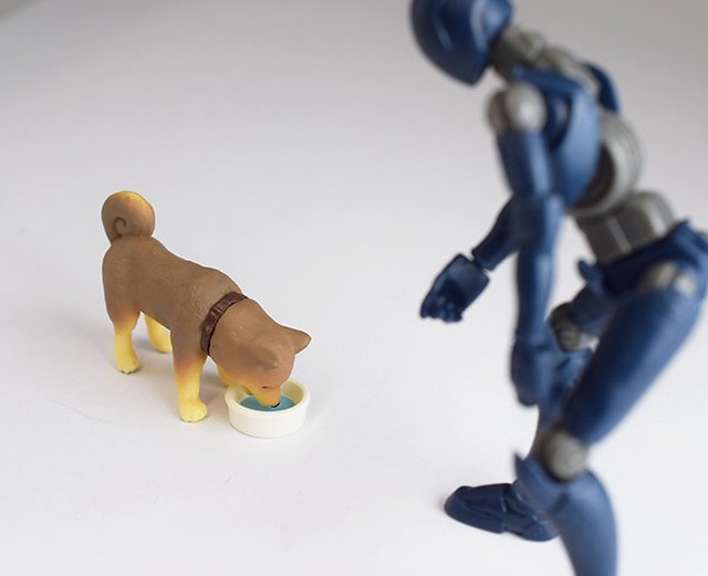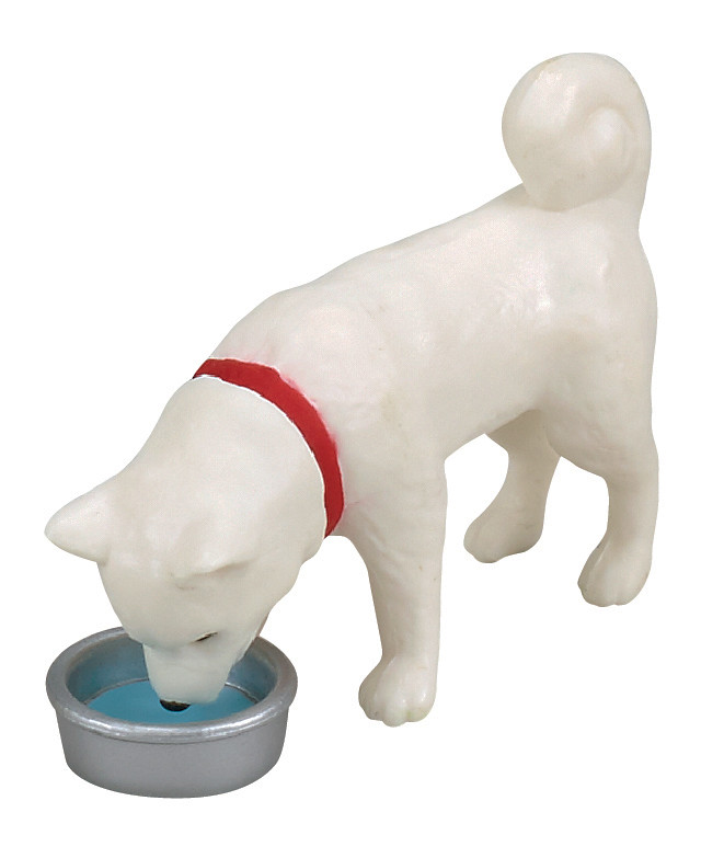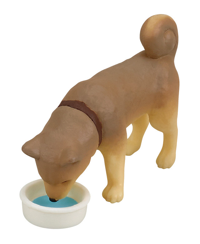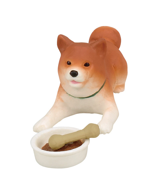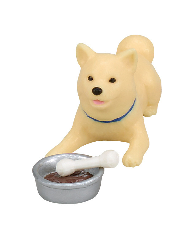一樣逗趣的將狗咬著餵食盆提醒主人「放飯」的模樣再現,以及還有趴在食盆前等待與頭埋在食物裡的樣貌等等,約會有三種不同的姿勢與六種不同花色的狗狗可以收集,餵食盆的底部還有特別小狗掌印的花紋其細節也相當有趣,每款狗狗的頸圈也是不一樣顏色的,有飼養狗狗的玩具人可以尋找一下是否有俯和自己愛犬花色的轉蛋作品,喜歡療癒小動物轉蛋系列的玩具人可以參考一下歐!