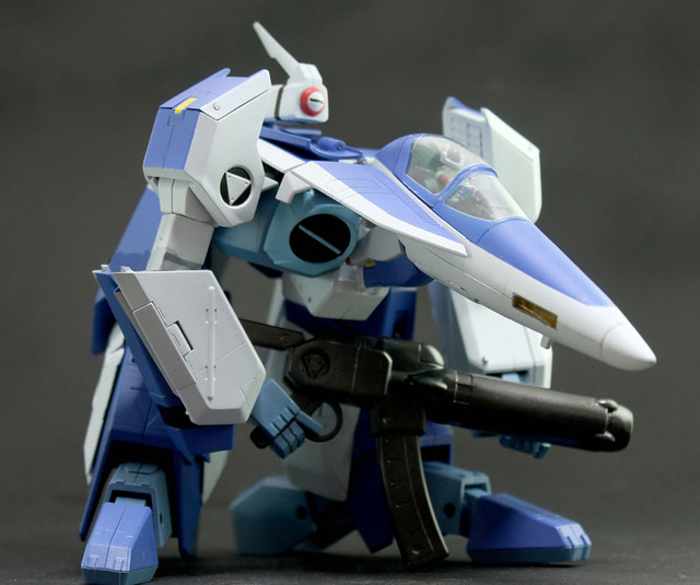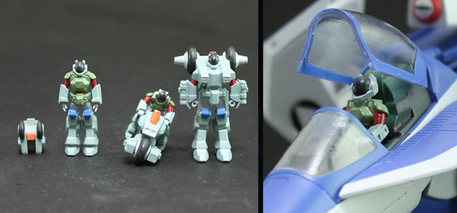 Η(エータ)型是故事主角"家華(スティック)"在劇中使用的藍色塗裝指揮官機種,能夠自由變換"飛行(アーモファイター)"、"上半身戰機下半身人型(アーモダイバー)"與"人型(アーモソルジャー)"三種不同型態,這次將動畫裡面可以變型的模樣完整呈現出來,另外還附有故事裡面彌補兵員上的數量不足所開發出來"霹靂車(アーマーサイクル)",通常以折疊模式的方式來收納,也可以展開轉換成機車模式用來移動,還可以與人結合變型的設計,當初相當讓動畫粉絲們驚艷!提供給喜愛《太空戰神》動畫作品的玩具人參考。