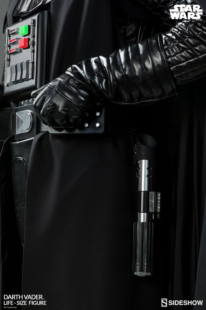 Sideshow 官網釋出了一系列「黑武士 Life-Size Figure」圖片,真是怎麼看怎麼震撼啊~頭部可以左右移動,還可以稍微抬高讓他展現經典的姿勢!腹部的儀表板內建了發光裝置增加這款驚人雕像的可玩性,盔甲、服裝和披風也完全細緻重現「黑武士的英姿」,值得一提的還有掛在腰際的光劍,超有質感的(可惡想玩~)這影史最經典的反派之一,果然要有這種超重量級的收藏品搭配啊!