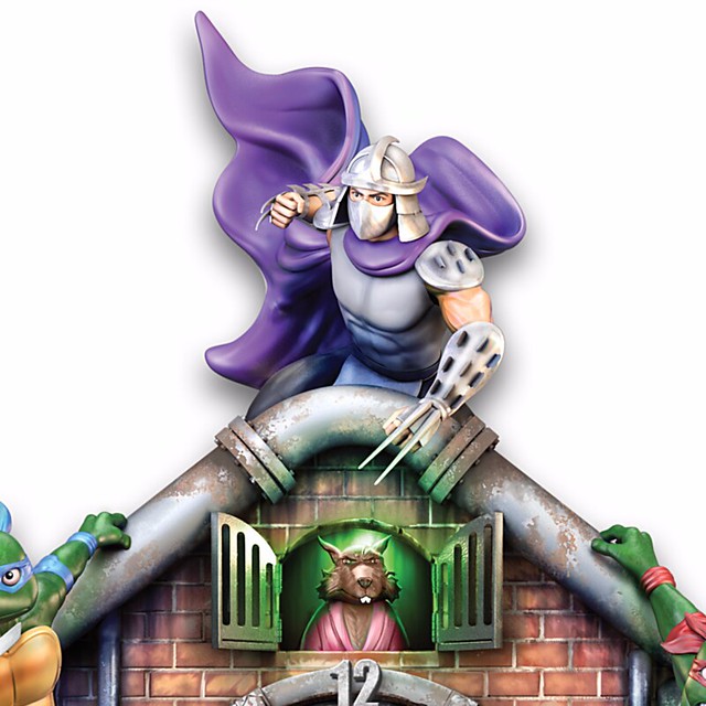 忍者龜迷們看過來~歐美線上購物平台Bradford Exchange,推出了一款限定版的《忍者龜》立體造型咕咕鐘!場景以地下水道為主題來設計,將忍者龜四兄弟、邪惡忍者許瑞德Shredder還有從窗戶探出頭來的「老師」史普林特Splinter立體化,一場刺激的冒險將在家裡展開!