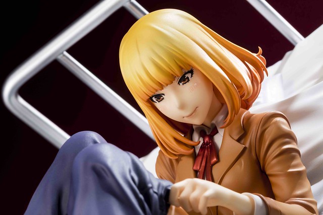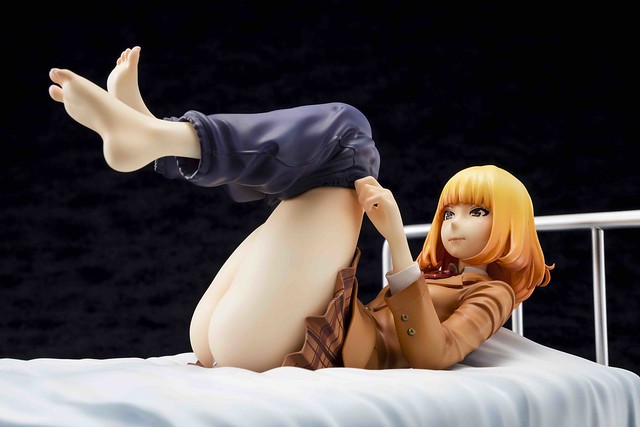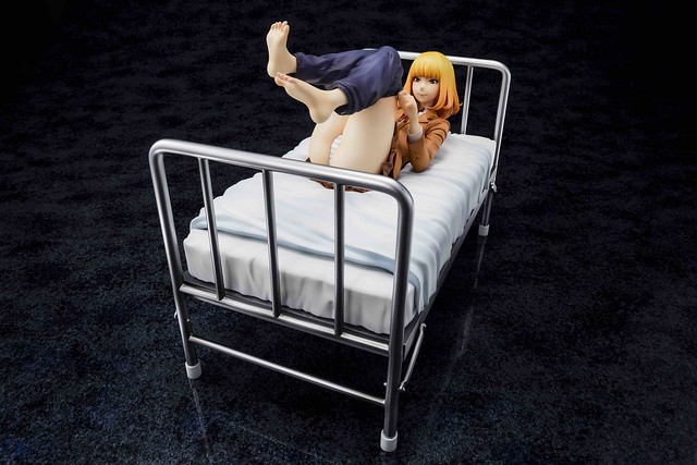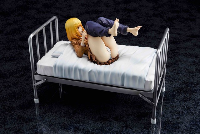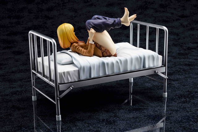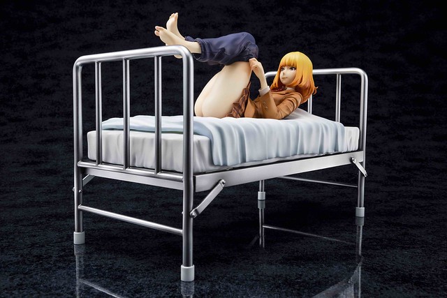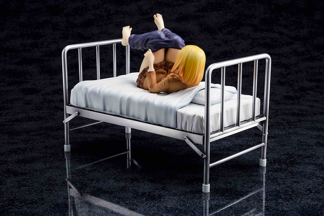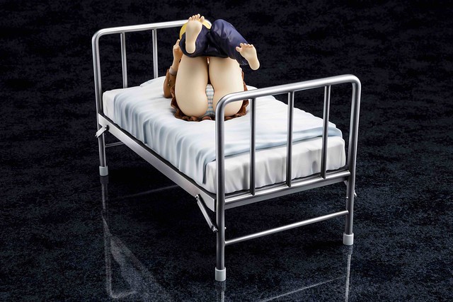「綠川花 1/7比例模型」呈現了花學姐在保健室的床上換裝的場景,頭髮部份使用了鮮艷的漸層塗裝,略帶嬌羞的五官造型忠實再現,連腮紅與唇蜜上的光澤感也毫不遺漏。豐滿的臀部曲線渾圓,在搭配多層次的膚色塗裝讓作品更加自然,藍白內褲上的縫線、美杜莎形狀等細節都非常精緻!底座的床則有豐富的皺摺細節,鐵架部份選用的金屬色也相當真實!