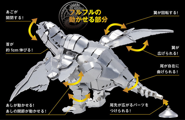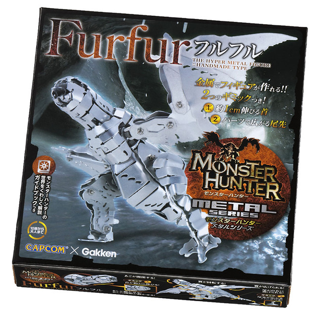 以科學玩具著稱的日本學研公司日前宣佈將與遊戲大廠 CAPCOM 合作,推出以共鬥遊戲《魔物獵人》系列為主題的新系列商品「魔物獵人金屬系列(モンスターハンター メタル シリーズ)」,第一彈將收錄兩種經典大型魔物「雄火龍(リオレウス)」以及「夫魯夫魯(フルフル)」,預計於 2017 年 06 月 15 日發售。
