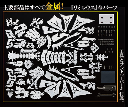 過去學研就已推出了相當受歡迎的「金屬工作系列(メタル工作シリーズ)」,以人氣的昆蟲、恐龍為主題,運用特殊金屬加工技術將鋁製成套件,並且設計了螺絲、彈簧等構造,不但外型極度還原,還有非常精密的可動機構,不論是小孩或大人都能輕鬆完成高質感的金屬模型。而這次與《魔物獵人》系列的合作更是運用金屬零件,將魔物們的特徵以最大限度表現出來!
