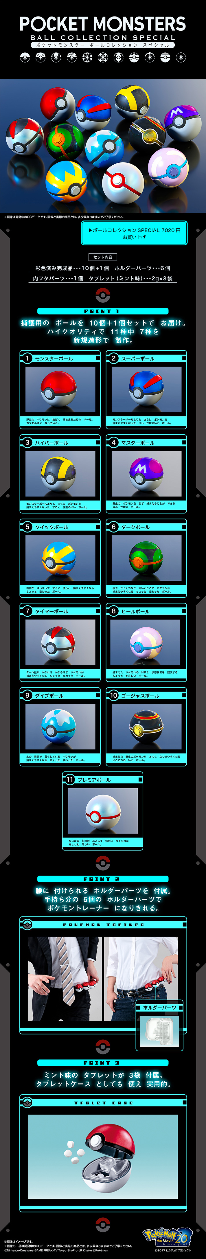 繼先前有著高級金屬質感、超級熱賣的《精靈寶可夢》食玩「精靈球收藏」後,日本 BANDAI 萬代玩具公司食玩事業部今(20)日再度發表了同系列最新商品「精靈球收藏 SPECIAL」(ボールコレクション SPECIAL)預計於 2017 年 09 月發售的消息,此商品僅在「Premium BANDAI」線上商店開放預購。