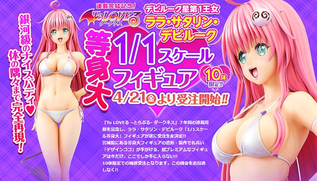 心靈糧食完結了怎麼辦?別擔心!出版《週刊少年Jump》的日本集英社為紀念《出包王女DARKNESS》結束了 7 年的連載,將與知名等身模型製作公司 DESIGN CO-CO(デザインココ)合作,推出第一(?)女主角「菈菈·撒塔琳·戴比路克 1/1比例等身大模型」,於今(21)日起開始抽選販售,全球限量 10 體,參考售價 2,800,000 日圓+稅。
